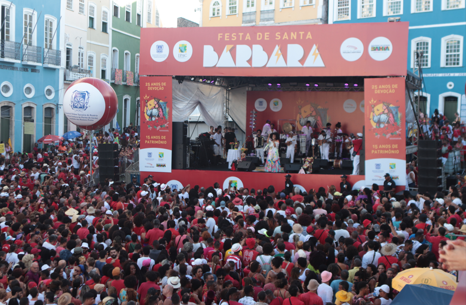 A Festa de Santa Bárbara abre o calendário de festas populares da Bahia e reúne milhares de fiéis que vão às ruas do Pelourinho e do Centro Histórico para saudar a santa católica, padroeira dos bombeiros e dos mercados, e também para reverenciar a Orixá Iansã. As duas entidades, uma de tradição católica e a outra de matriz africana, estão associadas às cores vermelho e branco e às mulheres guerreiras e valentes. É comum, durante a festa, escutar o público saudar a santa e a orixá com expressões como “Amém!” e “Eparrei!”.