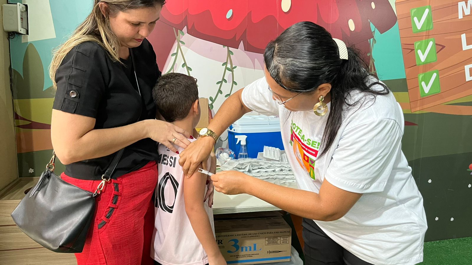 Moradora do bairro Jardim Brasília, Marise garantiu a imunização dela e também do neto, Natan Gabriel Santana, de 5 anos. “Toda vacinação é importante, especialmente nesse período em que há maior circulação da gripe. Então, temos que nos cuidar”, reforçou a vigilante.