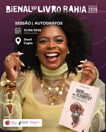 A autora e consultora de imagem Cáren Cruz, conhecida também por sua participação no programa Shark Tank Brasil, realiza nesta terça-feira o lançamento de seu primeiro livro, “Quem Decide o Que é Elegante?”, durante a Bienal do Livro da Bahia 2026. A obra, publicada pela Cogito Editora, propõe uma reflexão crítica sobre padrões estéticos e códigos de vestimenta considerados excludentes.