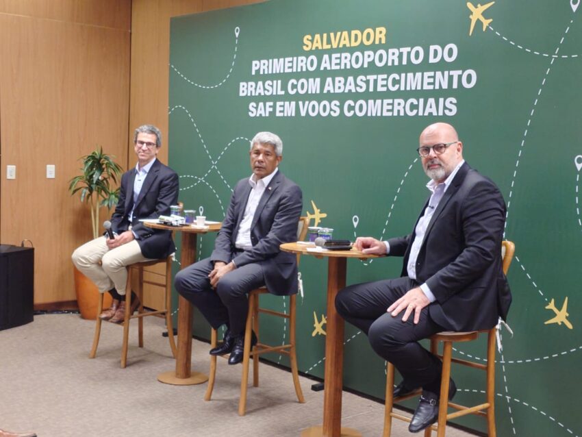 O uso de Combustível Sustentável de Aviação (SAF) — capaz de reduzir em até 80% as emissões de gases de efeito estufa em comparação ao querosene convencional — foi o destaque da coletiva de imprensa realizada nesta quarta-feira (26), com a presença do governador Jerônimo Rodrigues, do CEO da Vibra, Ernesto Pousada, e do CEO da Vinci Airports no Brasil, Julio Ribas. A iniciativa marca um passo pioneiro na implementação do combustível sustentável no Salvador Bahia Airport, principal aeroporto do estado.