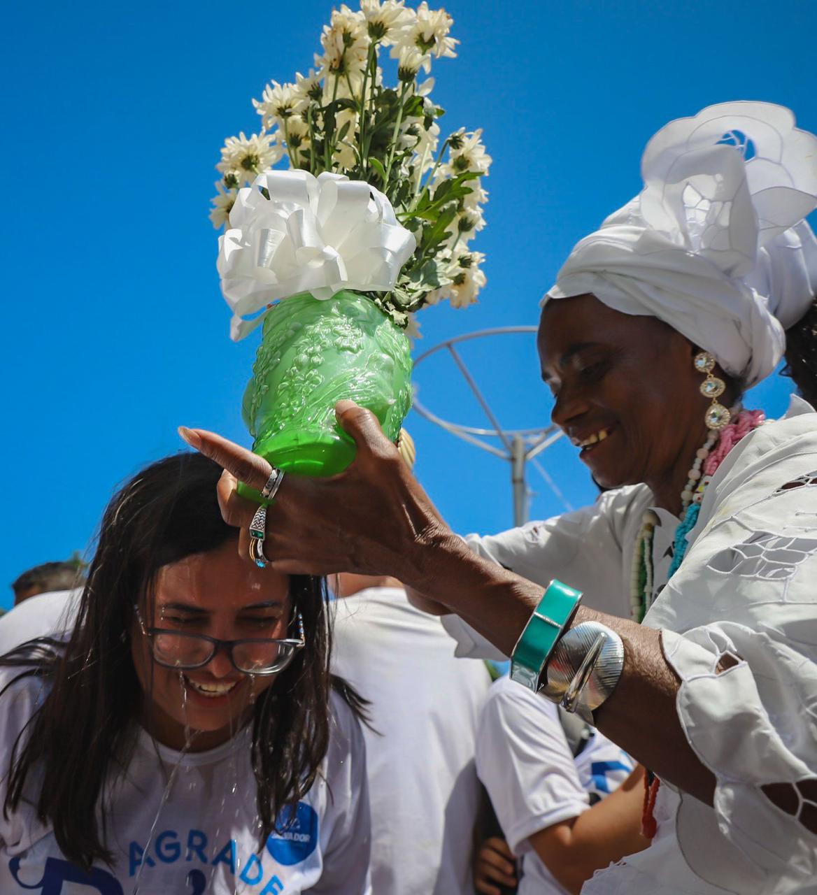 “A gente veio aqui pedir bênçãos, pedir a Deus Paz, proteção para a cidade. A gente tem um compromisso, eu e Bruno, de trabalhar cada vez mais para Salvador ser mais inclusiva, que tenha emprego para todo mundo, uma cidade antirracista, mas sobretudo uma cidade feliz. Então, contem comigo, o nosso trabalho, e obrigado pelo apoio de todos vocês”.