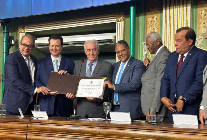 O presidente nacional do PSD, Gilberto Kassab, recebeu a mais alta condecoração da Câmara Municipal de Salvador, a Medalha Thomé de Souza, na última segunda-feira (25). A honraria foi proposta pelo vereador Edvaldo Brito.