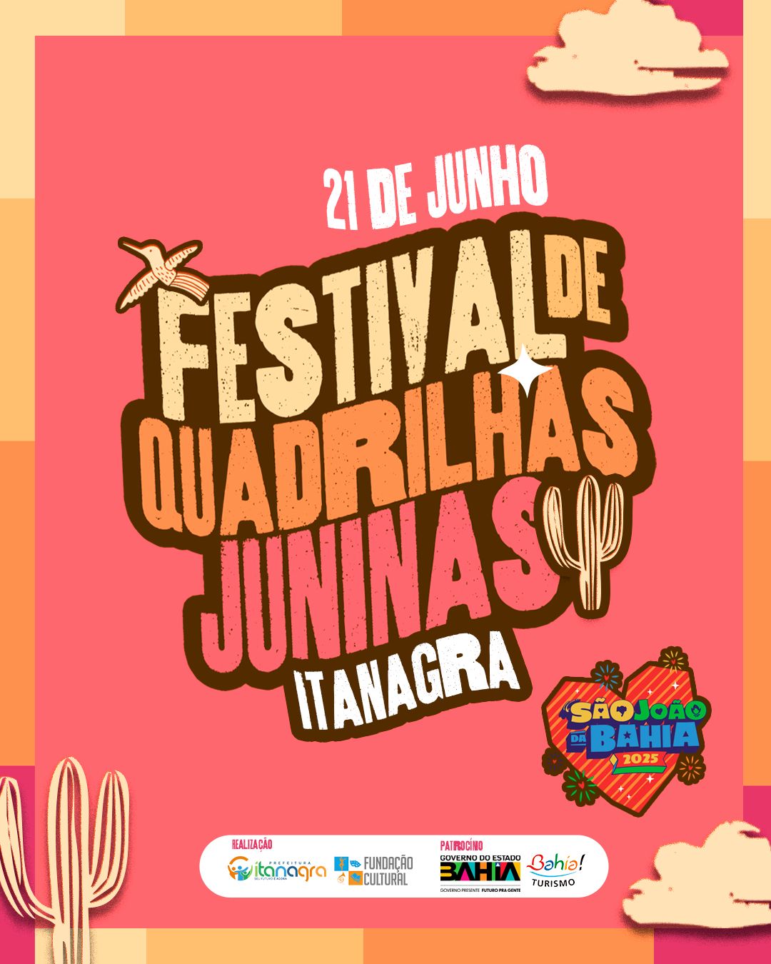 A cidade de Itanagra, no Litoral Norte da Bahia, será palco de um dos eventos mais aguardados do calendário cultural de 2025. No próximo mês de junho, acontece a 1ª edição do Festival de Quadrilhas Juninas de Itanagra, uma iniciativa da Fundação Cultural em parceria com a Prefeitura Municipal de Itanagra, com patrocínio do Governo do Estado da Bahia e da Secretaria de Turismo (SETUR).