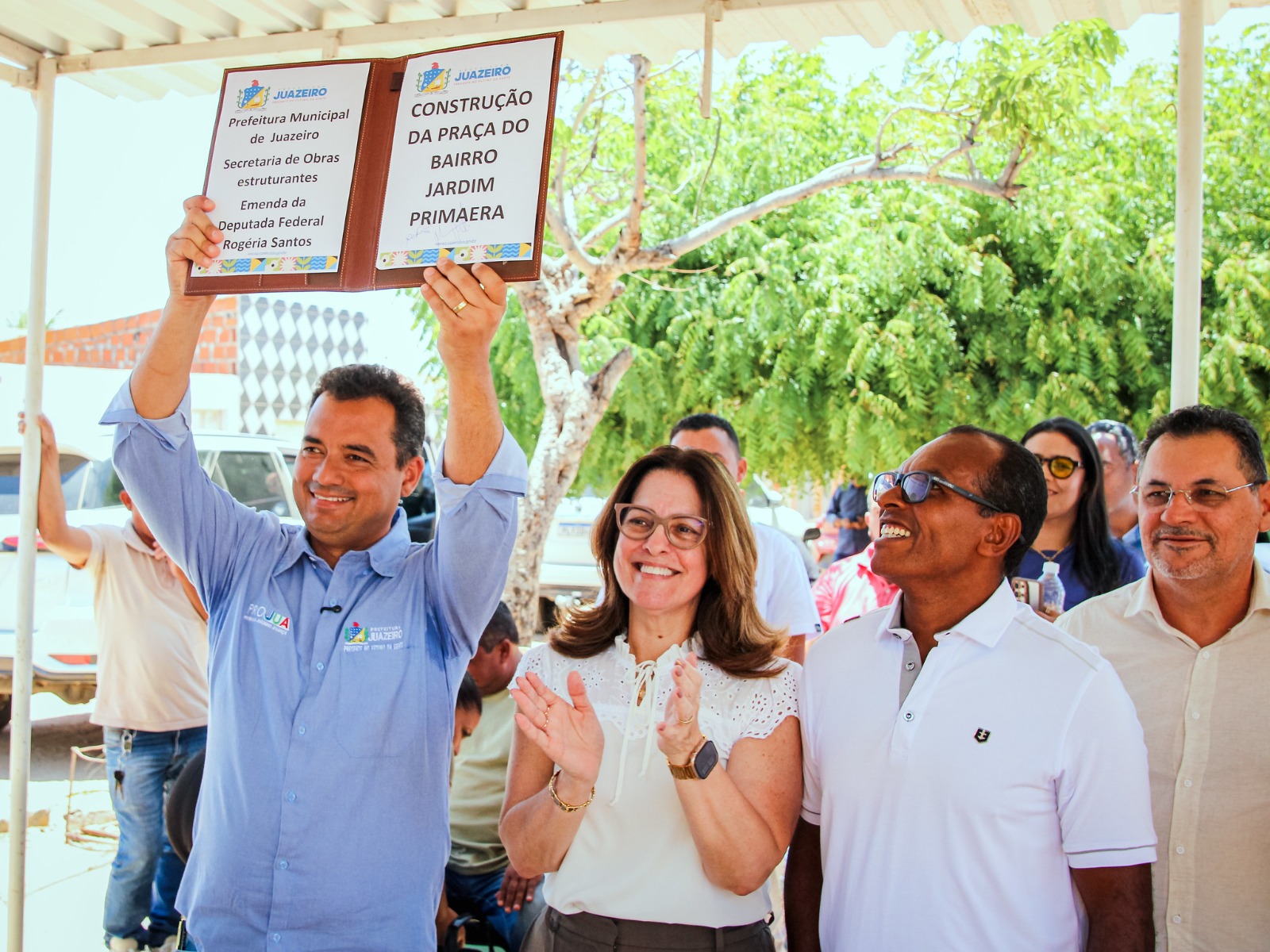 A deputada Rogéria Santos destacou a parceria com a prefeitura e o compromisso com o avanço da cidade. “Hoje é mais um dia de boas notícias em Juazeiro. O anúncio da construção da praça do Jardim Primavera é fruto de uma emenda que destinamos com muito carinho, pensando em transformar a vida das pessoas. Ontem inauguramos com o prefeito um pátio multiuso no bairro João Paulo II. Estou muito feliz por estar ao lado do prefeito Andrei e do nosso amigo Bucho, presidente da associação de moradores, juntos fazendo Juazeiro avançar”, afirmou.